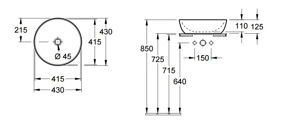 - без отвору під змішувач;