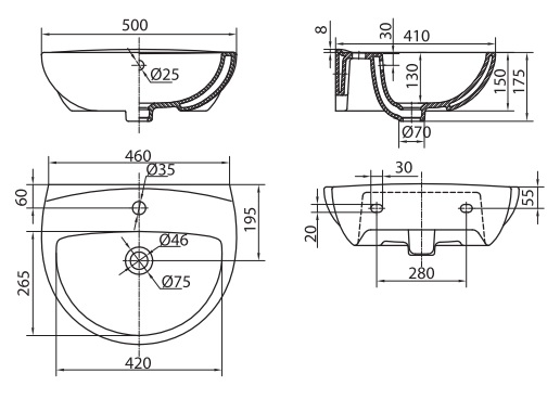 Умивальник Kolo Frejia підвісний, заокруглений, 50 см, білий (L71150000) має такі особливості: