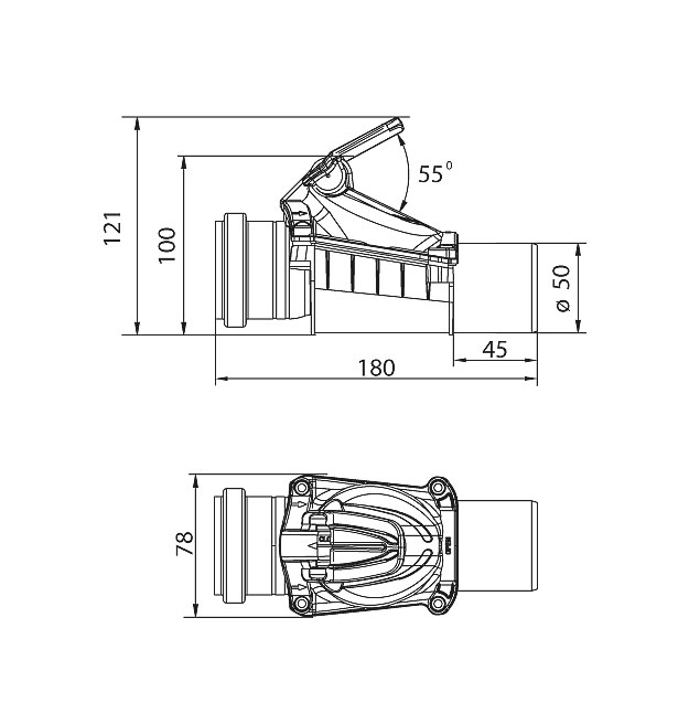 Karmat ZB50-A BIAŁA (версія A) встановлюється в горизонтальному ряді стічних труб діаметром 50 мм приклеєних до стіни за допомогою кріпильних затискачів. Встановлений таким чином зворотний клапан може оберігати одночасно кілька пристроїв, якщо вони приєднані до однієї і тієї ж інсталяції.