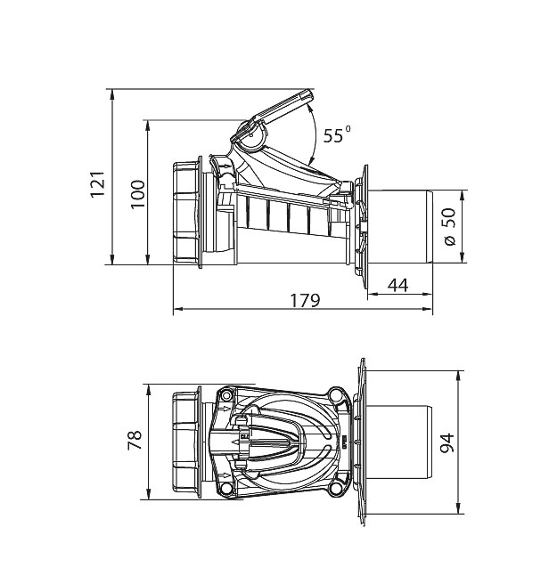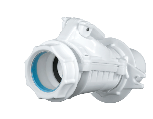 Karmat ZB50-B BIAŁA (версія B) приєднується до класичного розтруба деталі, вмонтованої в стіні. Спеціальна естетична маскувальна розетка дозволяє прикріпити клапан до стіни за допомогою двох шурупів, це оберігає систему від автоматичного роз'єднання у випадку, коли зворотний потік стічних вод створює тиск в каналізації. До закріпленого пристрою сифон приєднується за допомогою спеціальної муфти з гайкою.