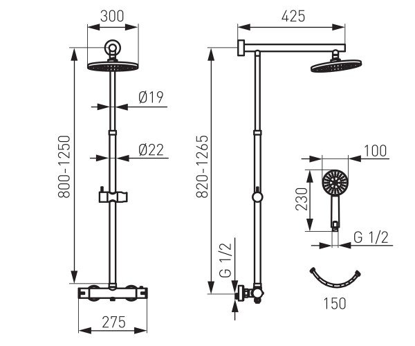 змішувач, верхній душ, душова лійка, душова штанга, тримач ручного душу, шланг |