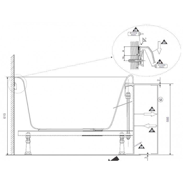 Кріплення панелі Ravak BeHappy (B21200000N) використовується для монтажу панелей ванн серії BeHappy.