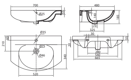 Умивальник Kolo Runa вбудований, заокруглений, 70 см, білий (L81970000) має такі особливості: