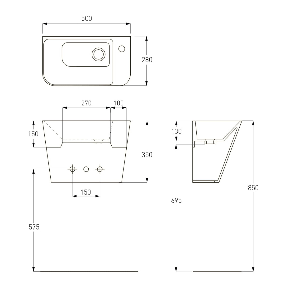 Умивальник Volle Teo підвісний, моноблок, 50 см, чорний (13-88-601black) — особливості: