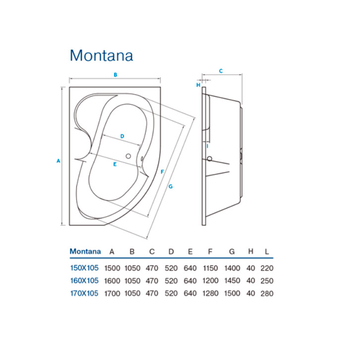Ванна акрилова Koller Pool Montana 170х105 см, асиметрична, права, без ніжок (62014) – особливості: