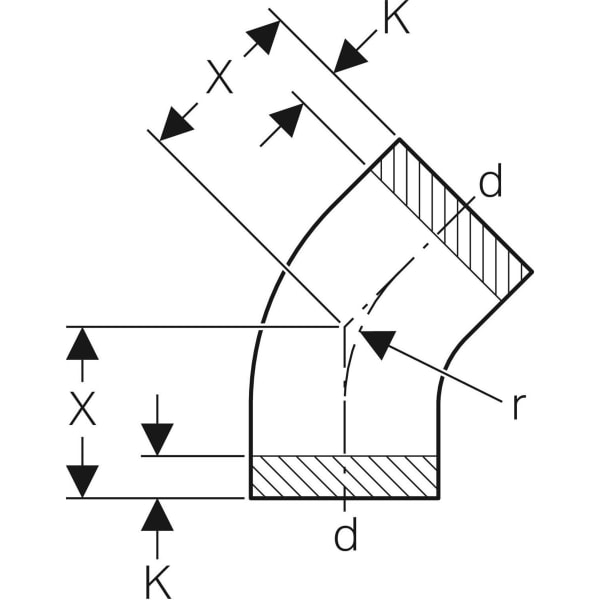 Відвід Geberit PE, 45°, d 200 мм